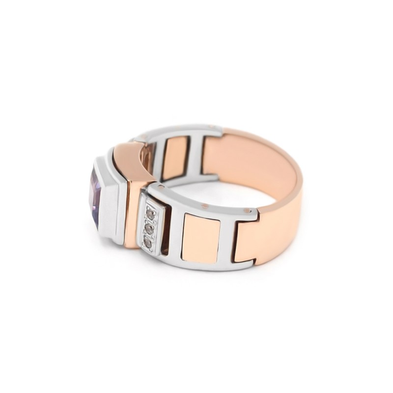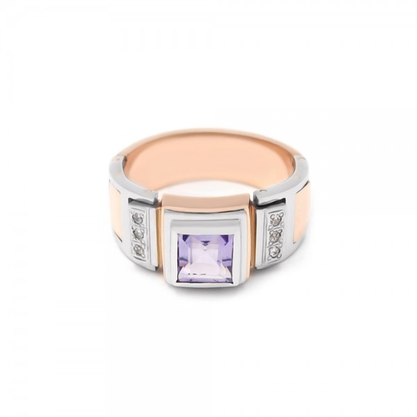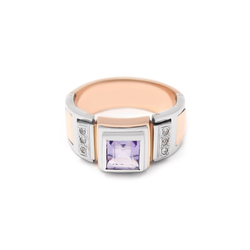 Перстень золотий з аметистом та фіанітами 11195Ам