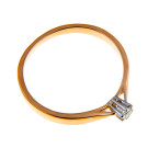 Зроблена з двох видів золота 585 проби, класична, стриманого вигляду — гладеньке тонке кільце з червоного, що до центру дещо потоншується, а по центру, невеличка стилізована «квіточка» білого з оправленим в неї іскристим фіанітом! Лаконічність, простота і довершеність! Каблучка може стати улюбленою, особливо якщо буде подарована на заручини. А враховуючи її демократичність і універсальність, легкість з якою вона впишеться в будь-який образ та комбінується з іншими прикрасами то — сто відсоткова гарантія!