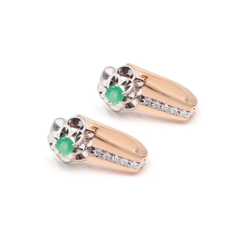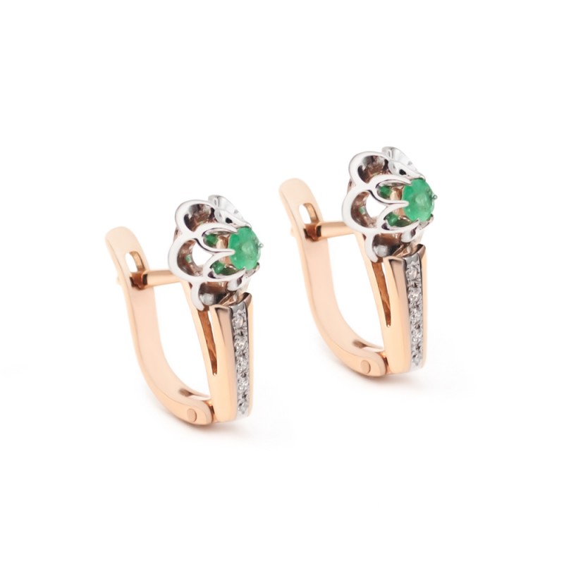 Серьги золотые с изумрудами и бриллиантами 303-0209ДСм