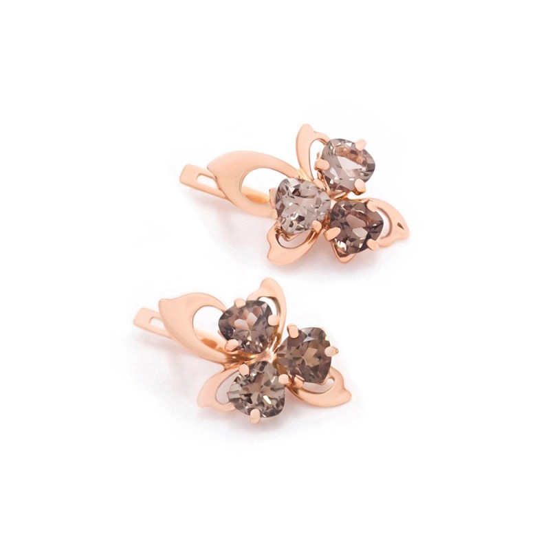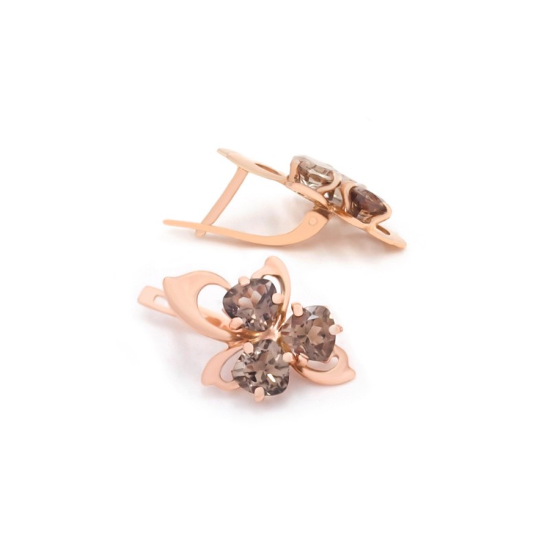 Сережки золоті з димчастим кварцом 12391