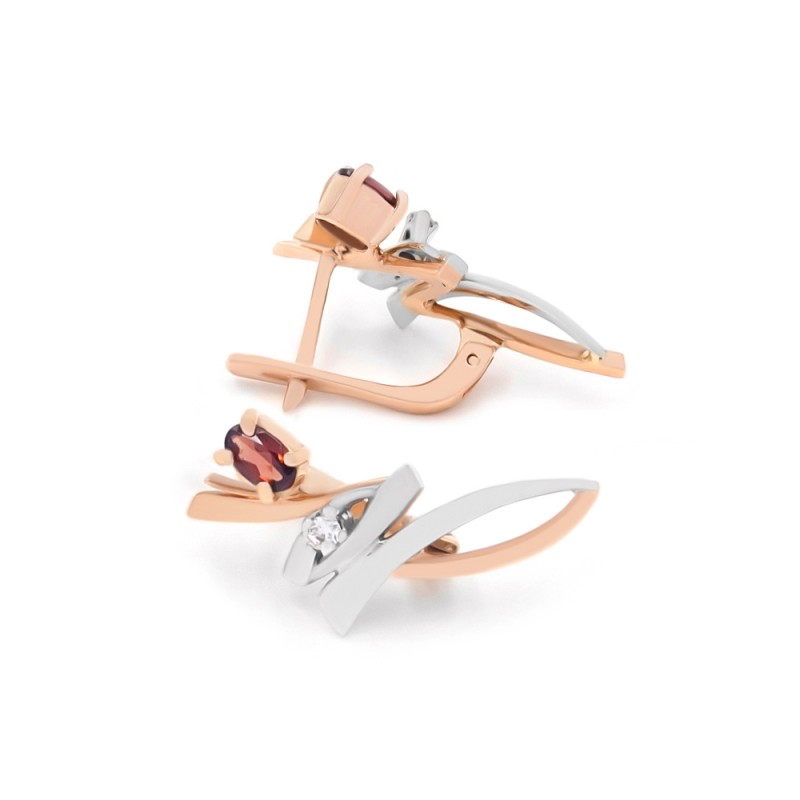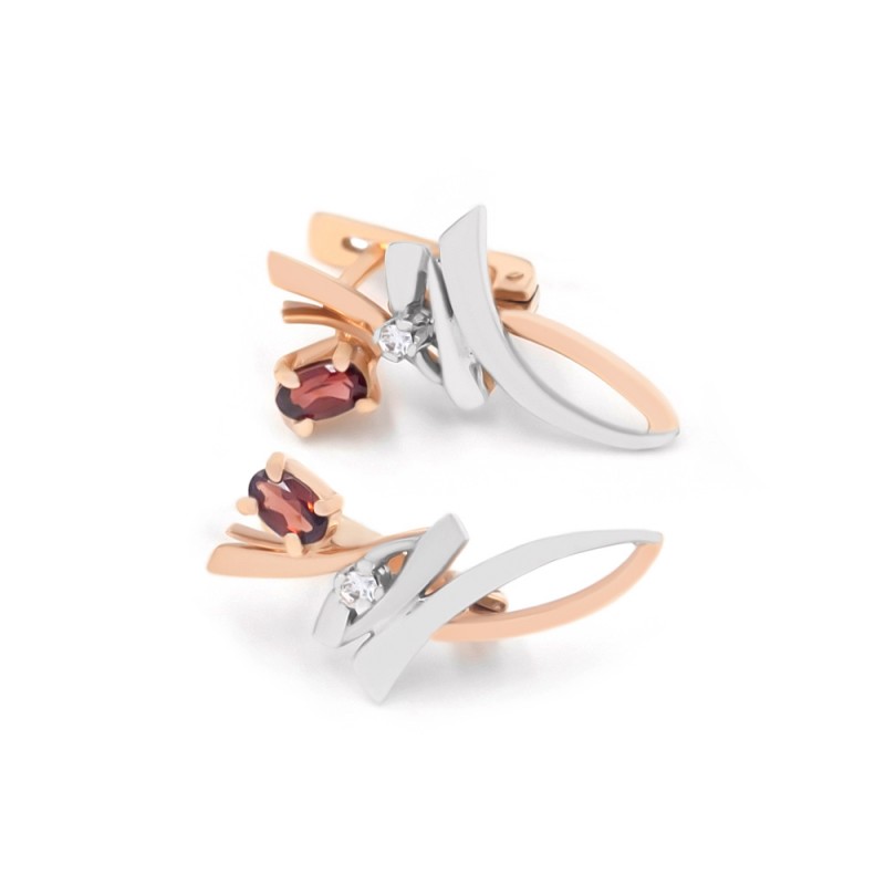 Сережки золоті з гранатом та фіанітами 12022